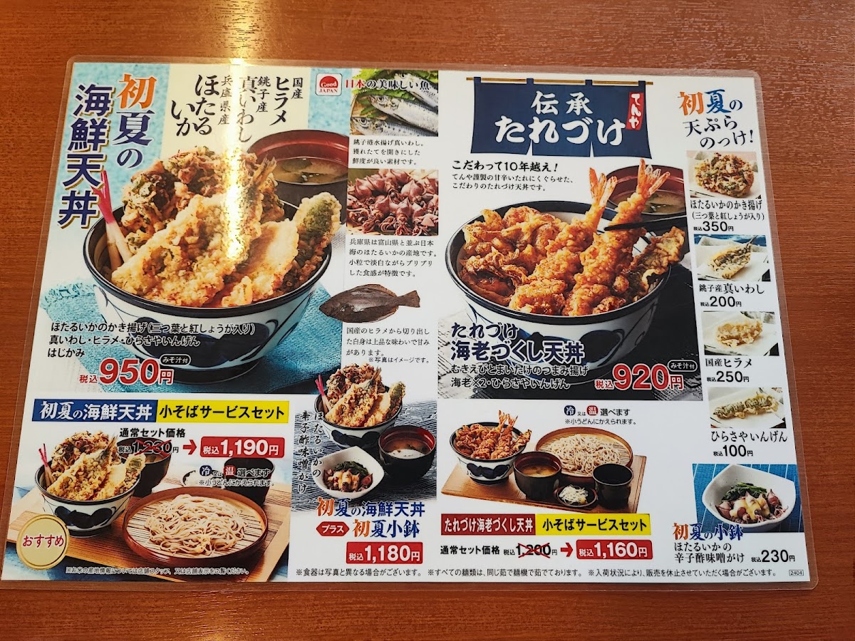 The menu at Tendon Tenya Koshigaya Lake Town Branch offers a refined balance of tempura and traditional Japanese flavors, perfect for both quick lunches and more relaxed dining. The 天ぷら飯と小とろろそばの showcases the restaurant’s skill in pairing crisp, golden tempura with the subtle, refreshing taste of tororo soba, creating a harmony of textures and flavors that feels light yet satisfying. For those seeking variety, the 小天丼とそば1人前セット ヒラマサ 夏魚 presents a delightful combination of a small tempura rice bowl with seasonal yellowtail, accompanied by a single serving of soba, emphasizing freshness and seasonal ingredients in every bite. Meanwhile, the 大江戸天丼セットとろろ蕎麦 stands out as a more indulgent option, offering a generous tempura rice bowl complemented by tororo soba, highlighting the restaurant’s commitment to traditional Edo-style presentation with modern touches. Overall, the menu demonstrates a thoughtful attention to balance, freshness, and the art of tempura preparation, ensuring that each set delivers both visual appeal and satisfying flavors. Whether enjoying a lighter meal or indulging in a full set, the dishes maintain consistency in quality, texture, and presentation, making Tendon Tenya a reliable choice for tempura enthusiasts visiting Koshigaya Lake Town.